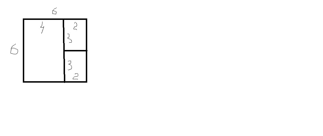 От прямоугольника отрезаем 6*4, остается 4*3. Его делим на два прямоугольника 2*3.. Составляем квдрат.