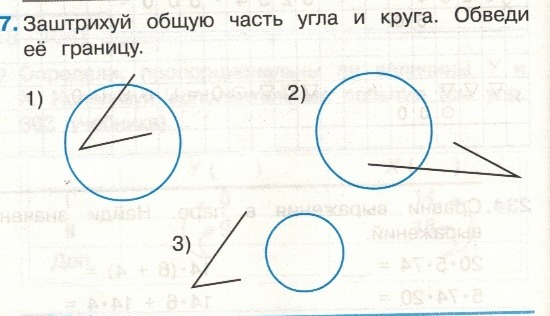 Заштрихуй общую часть угла и круга. Обведи ее границу.