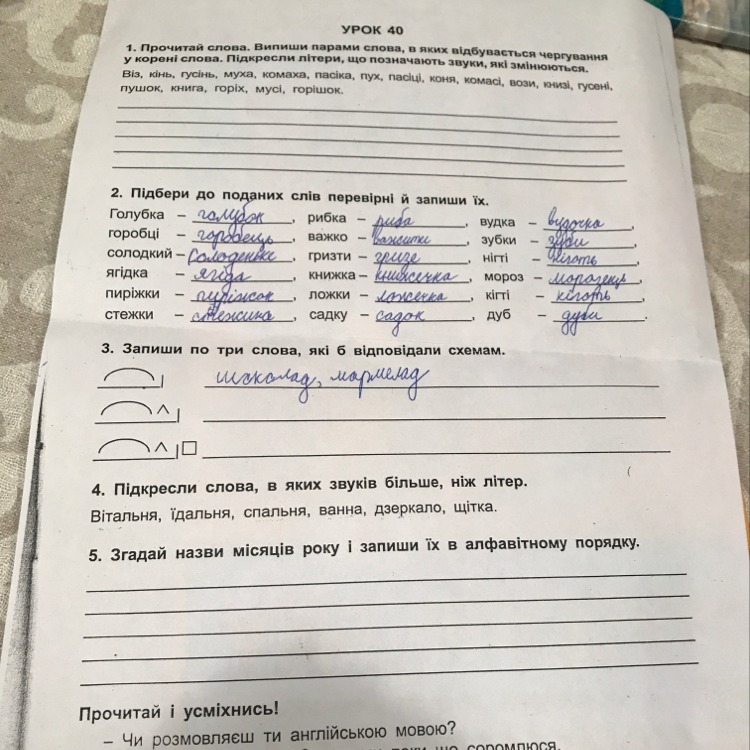 в 1 завданні зазвичай змінюються звуки: з глухих на дзвінкі, з дзвінких на глухі, м'які робляться пом'якшеними і т. д. (жирні літери це те що в заданні просить підкреслити.
