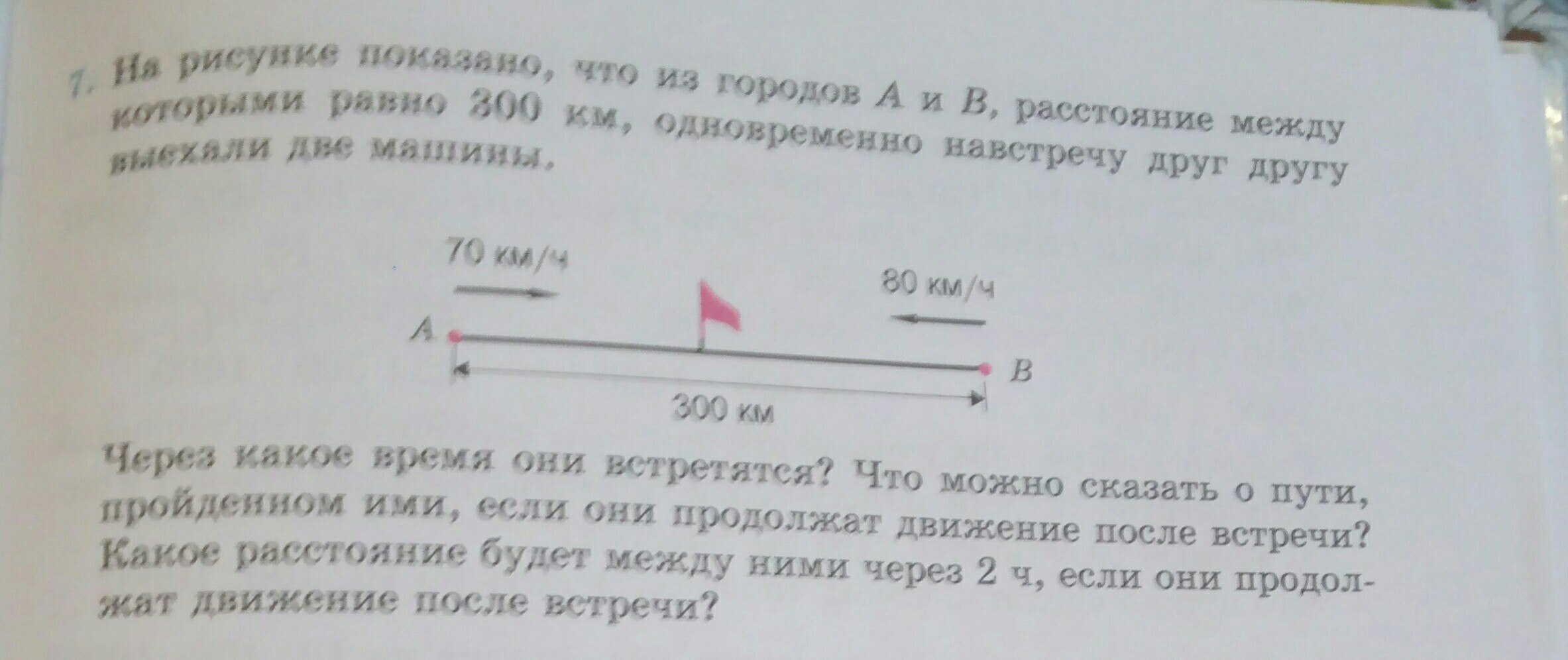 на рисунке показано, что из городов А и В расстояние между которыми равна 300 км одновременно навстречу друг другу выехали две машины.