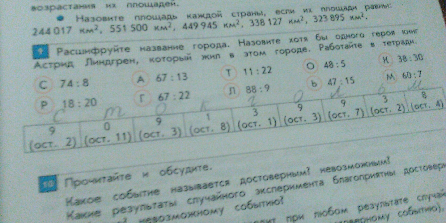 C-74:8=9(ост.2) А-67:13=5(ост.2) Т-11:22=0(ост.11) О-48:5=9(ост.3) К-38:30=1(ост.8) Р-18:20=0(ост.18) Г-67:22=3(ост.1) Л-88:9=9(ост.7) Ь-47:15=3(ост.2) М-60:7=8(ост.4)