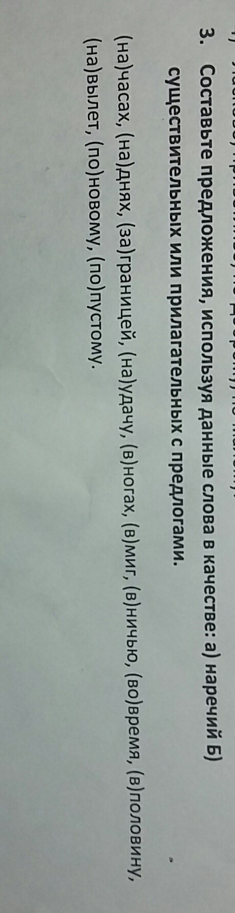 Составьте предложения,используя данные слова в качестве:а)наречий б)существительных или прилагательных с предлогами