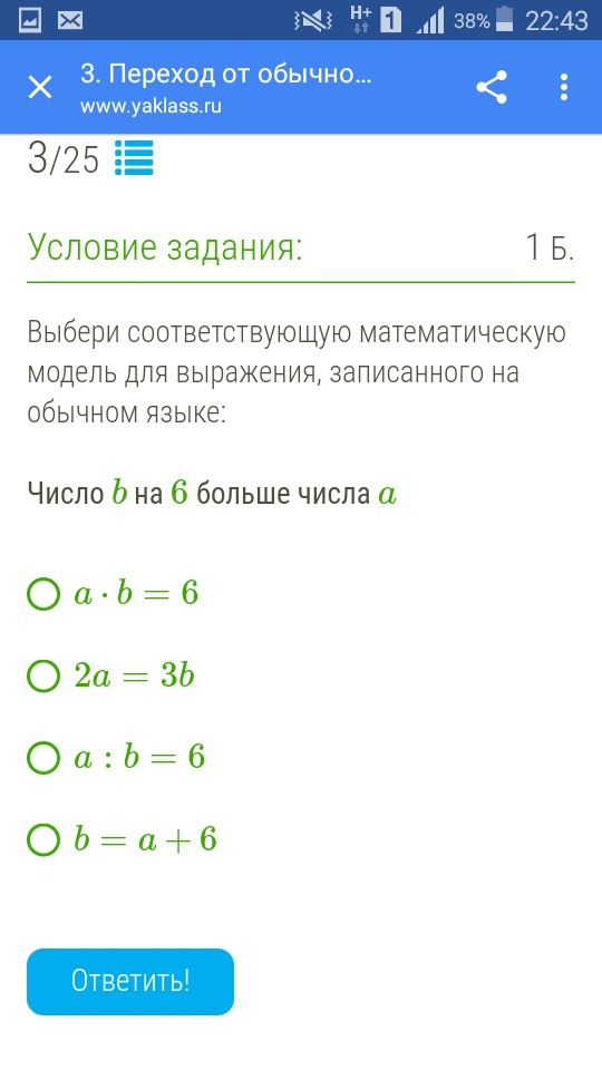 b = a + 6 предположим что b = 7 а = 1 =6+а= b