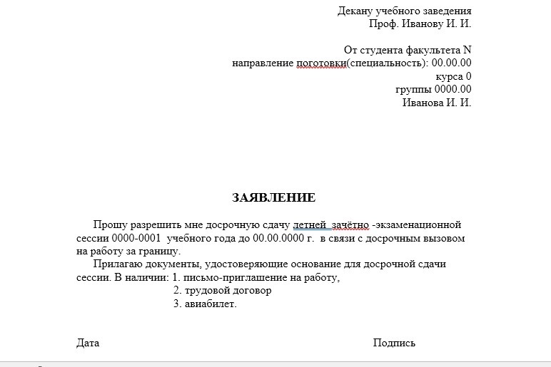 в) с просьбой разрешить вам досрочную сдачу сессии.