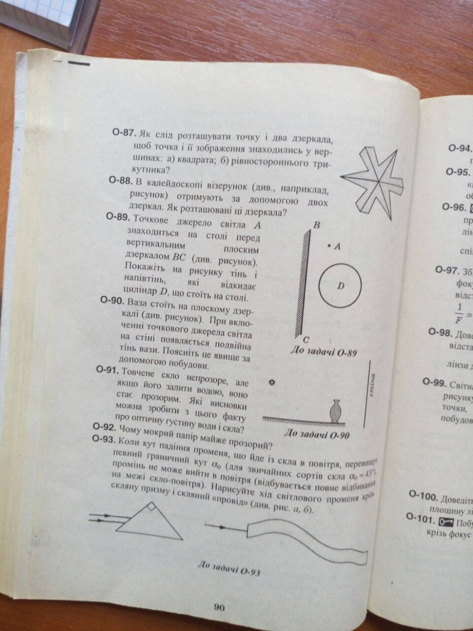 В калейдоскопе узор получают с помощью двух дзеркал.Как расположены эти зеркала?(рисунок к задаче 0.88)