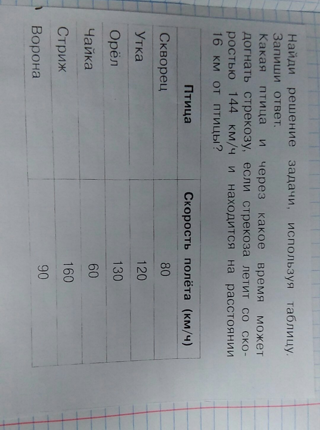 Какая птица и через какое время может догнать стрекозу, если стрекоза летит со скоростью 144 км/ч и находится на расстоянии 16 км от птицы?