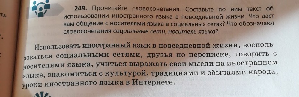 Мы должны изучать и использовать иностранный язык в повседневной жизни.Чтобы больше изучать язык мы пользуемся социальными сетями,друзей по переписке.Даже так мы находим новых друзей.Допустим,познакомиться с американцем, знакомиться с их культурой,традициями и обычая народа.И узнавать много нового.Выражать свои мысли на иностранном языке что бы развить свой словарный запас.Уроки иностранного языка полезны в Интернете,можно в своболное время изучать и в будущем знать хорошо язык.)