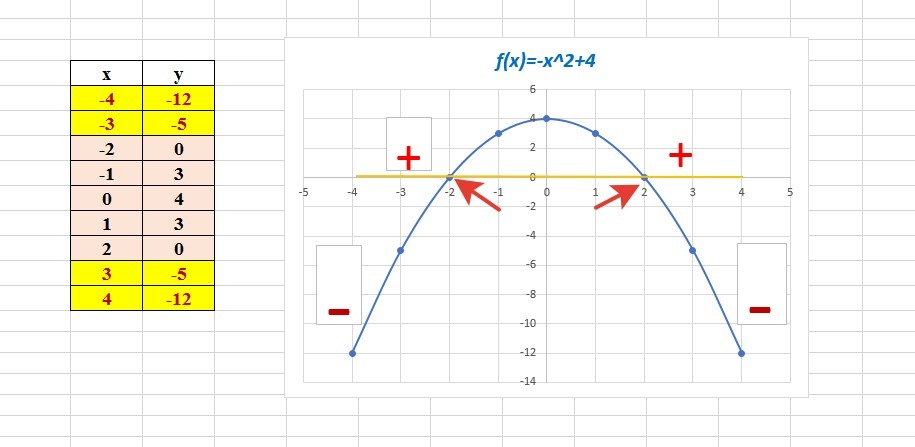 2)При каких значениях х функция принимает отрицательные значения y=-x²+4