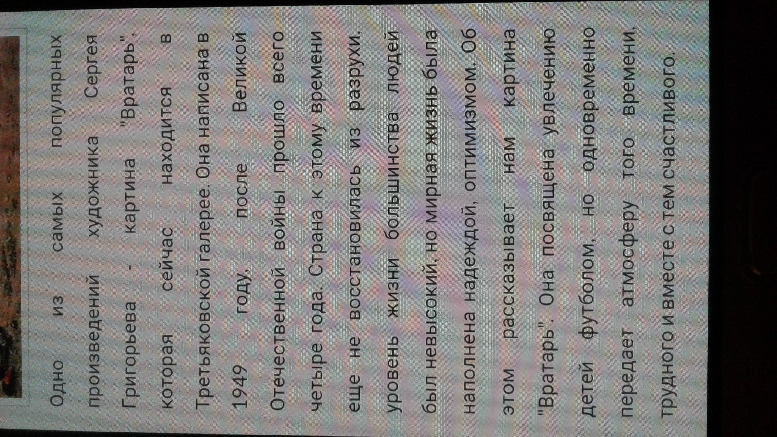 помогите нужно написать сочинение по картине "Вратарь" Автор С.Григорьев вот план 1.За домом в осенний день.2.Бесстрашный вратарь и его помощнтк .3.Зрители болеют по разному.4.Мастерство художника .5.Моё впечатление о картине