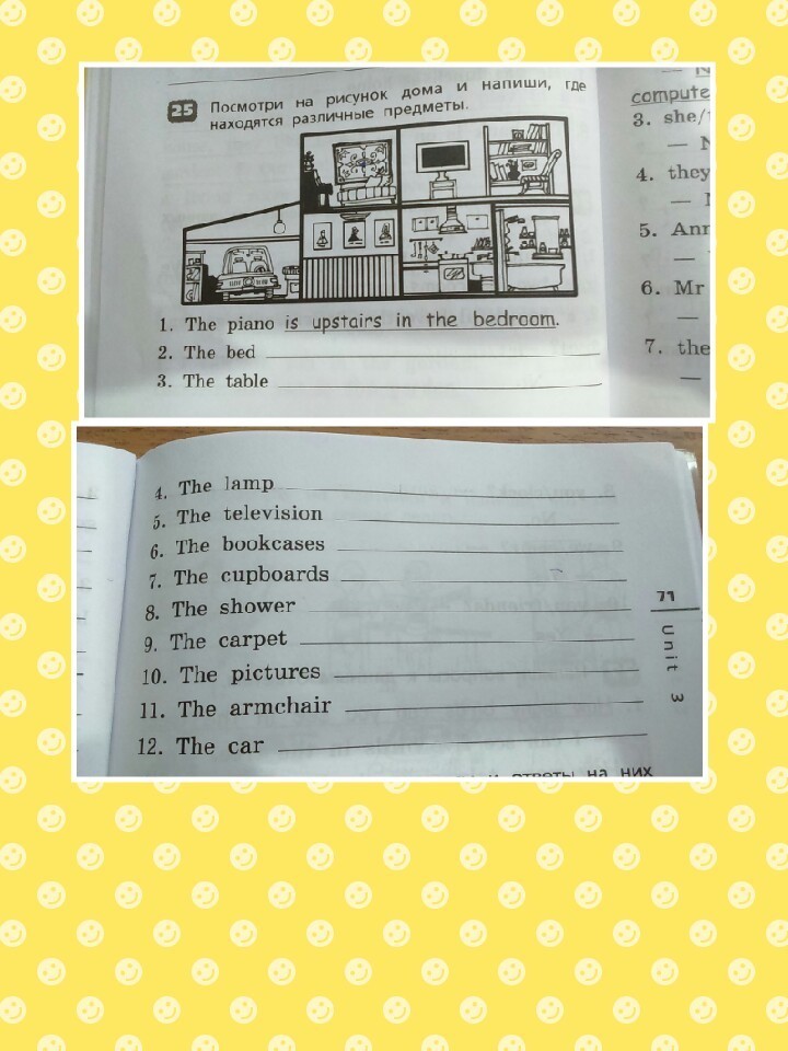 6. Is upstairs in the livingroom