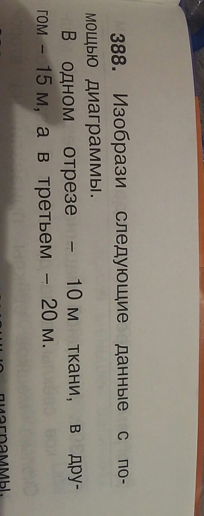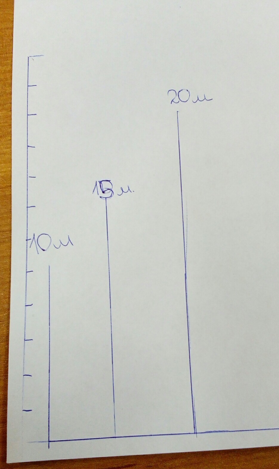 изобрази следующие данные с помощью лиограммы.В одном отрезке 10м ткани в другом 15м в третей 20м