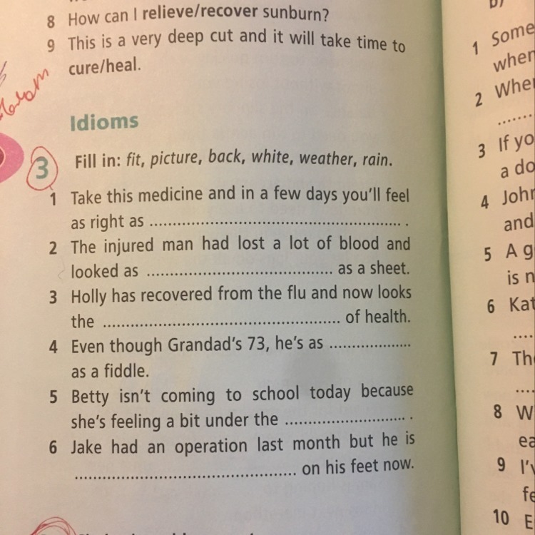 1. as right as rain. - Прими эти препараты, и через несколько дней ты будешь в полном порядке.