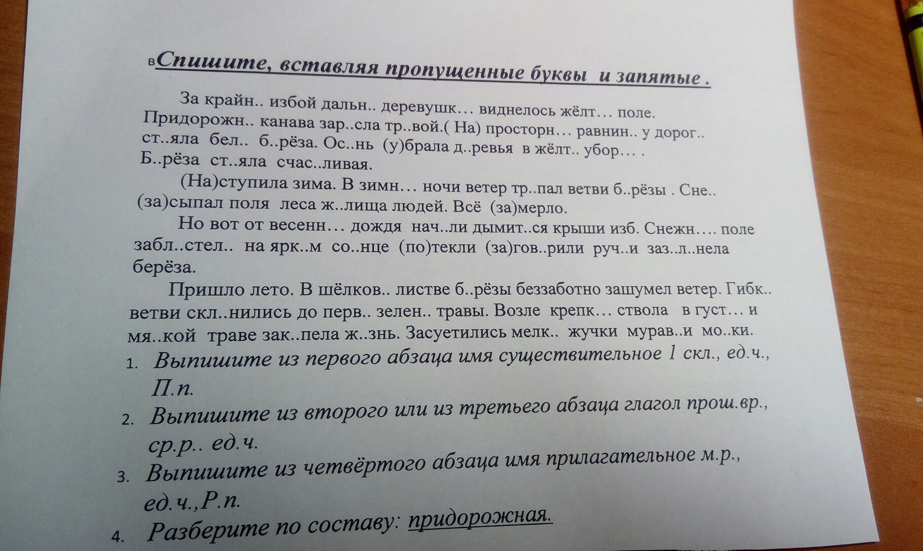 1. Равнине 2. Заблестело 3. Крепкого 4. При— приставка, дорож— корень, н— суффикс, ая— окончание, придорожн— основа слова.
