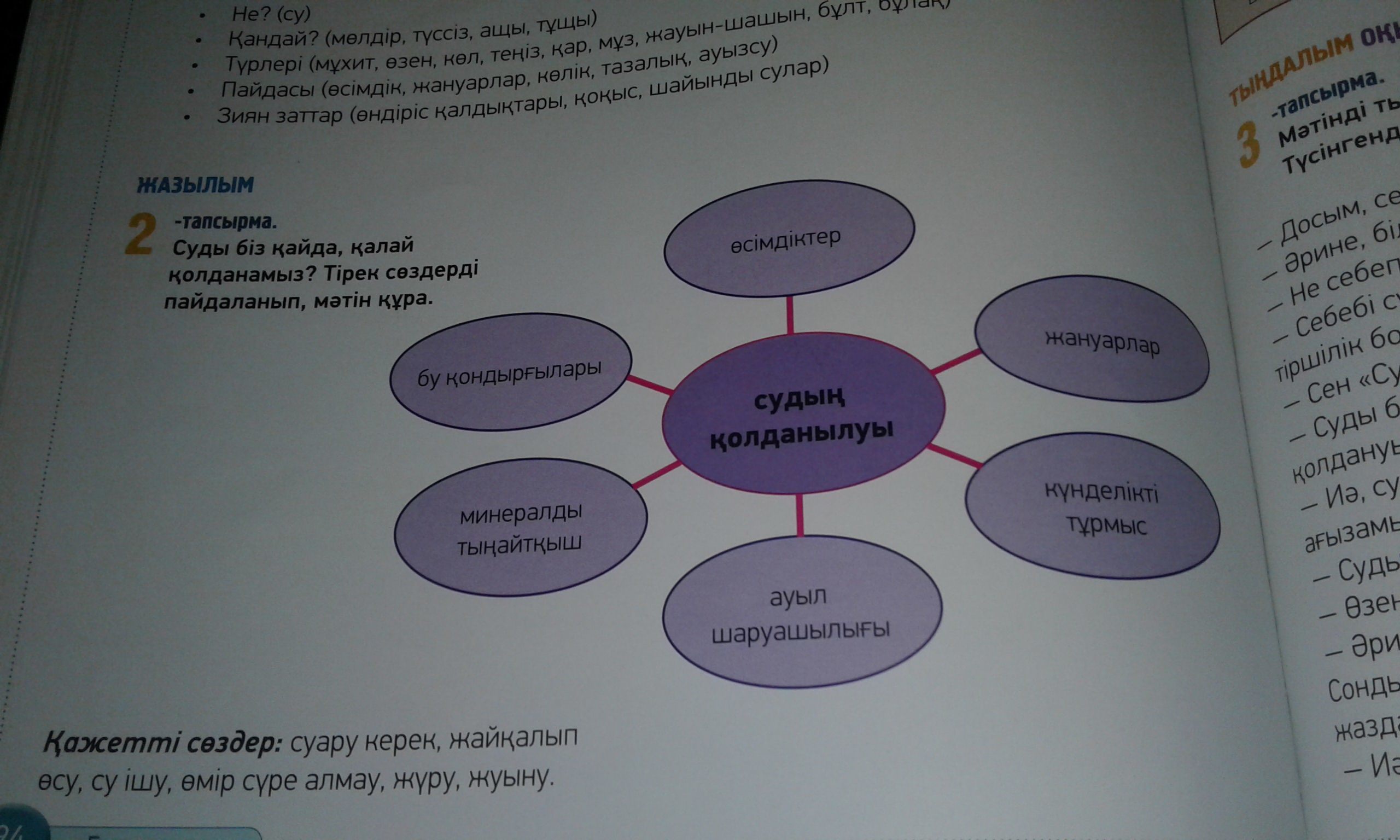 Суы адамы үшiн алмастырылмайтын, темiр, газ, көмiр, мұнайға қарағанда бағалырақ жаратылыс байлығы болып табылады,