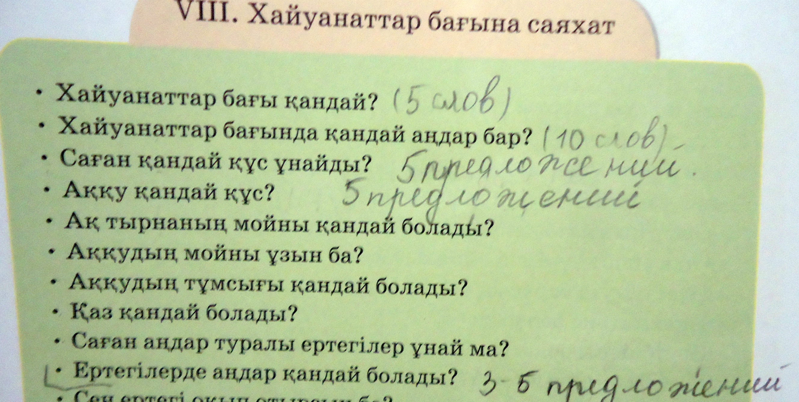 Маған колибри құсы ұнайды. Ол өте шағын, кітәй болсада ол өте әдемі. Оның қанатары өте жылдам. Калибри құсы гүлдердің шығынымен қоректенеді. Онын үзындығын 1 см дей.