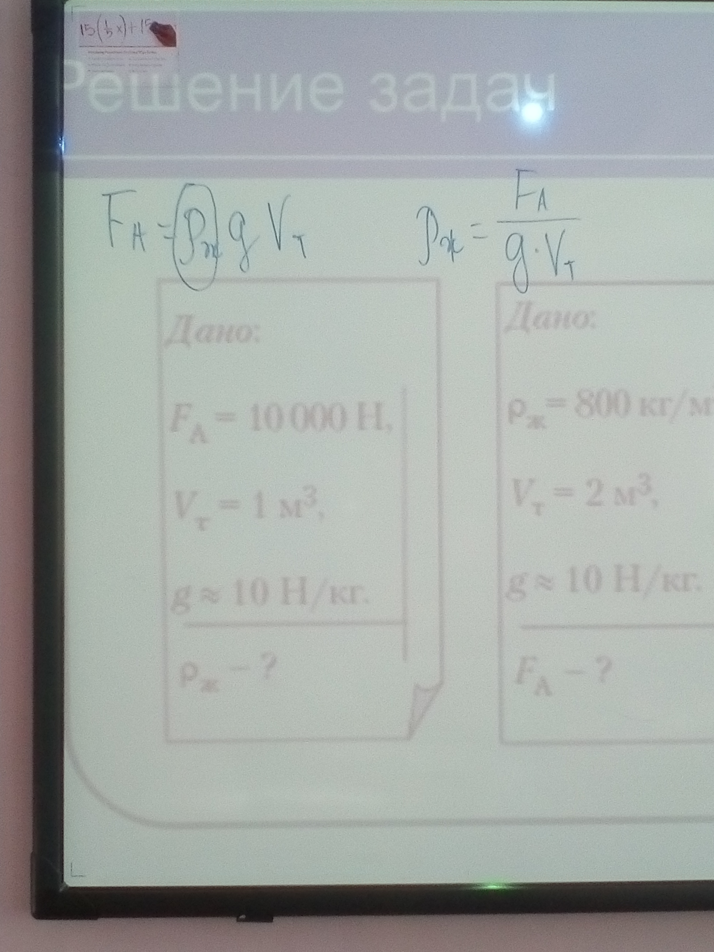 ρж=Fa/(g*Vт)=10000/(10*1)=1000 кг/м³