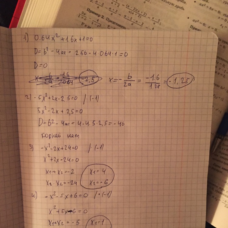 Четвёртое уравнение можно решить другим способом( не с помощью дискриминанта)