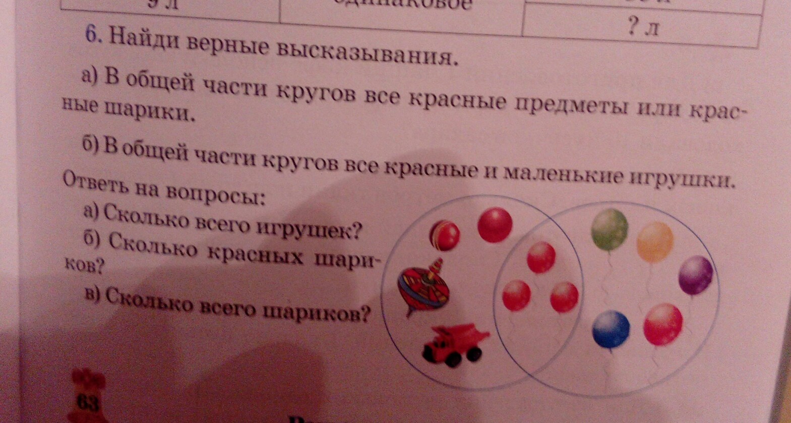 Найди верные высказывания в общей части кругов все красные предметы или красные шарики