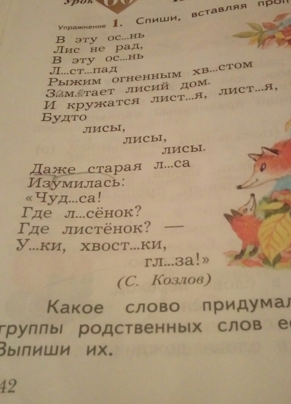 спиши вставляя пропущеные буквы какие две группы родственых слов есть в стихотворении+проверочные слова