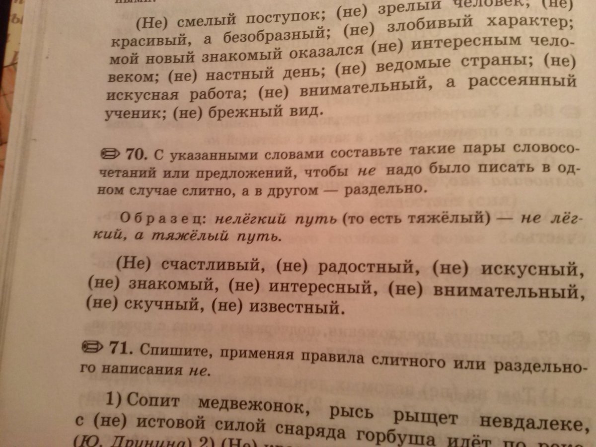 "Образец: нелёгкий путь(то есть тяжёлый)- не нелёгкий,а тежёлый путь.ЗАРАНИЕ ОГРОМНОЕ СПАСИБО)