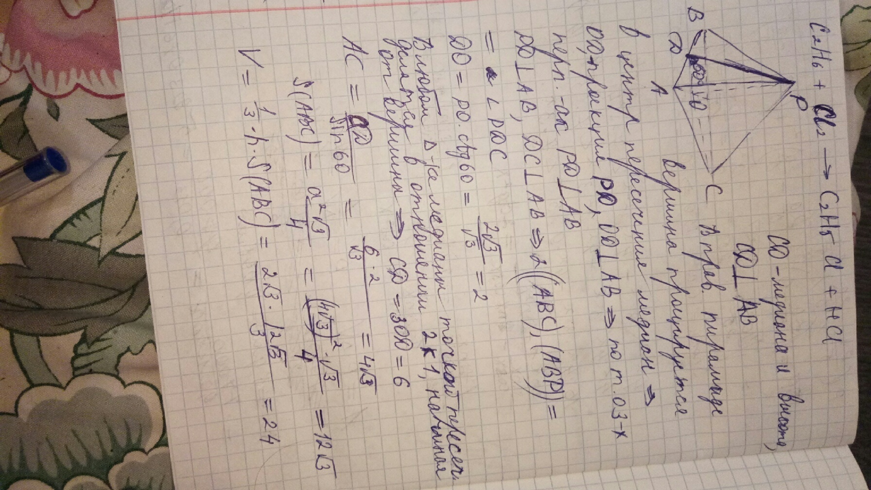высота правильной треугольной пирамиды равна 2√ 3 см а боковая грань образует с основанием пирамиды угол 60° найти обьем пирамиды