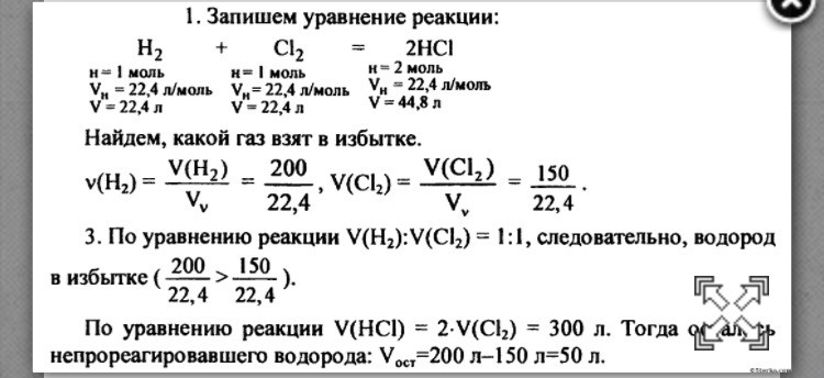 Оъем хлора водорода который получится при взаимодействии 100 литров хлора и 50 водорода равен?