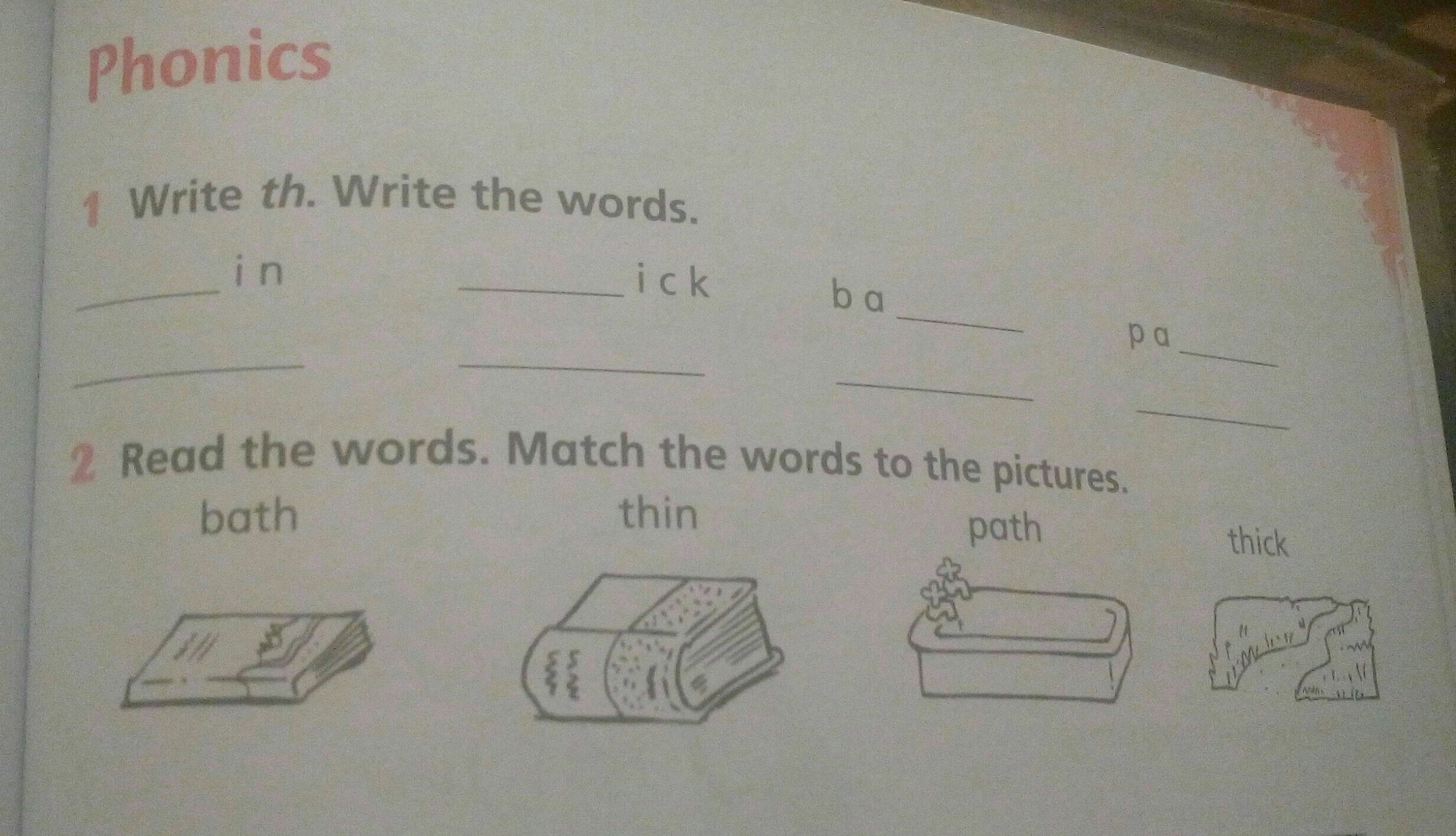 Thin - тонкий, thick - толстый, bath - ванна, path -дорога, тропа