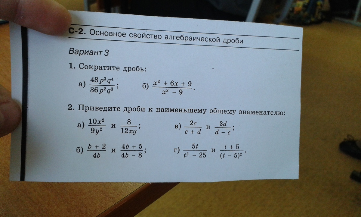 frac{48p^3q^4}{36p^2q^3} = frac{4pq}{3} \\ frac{x^2+6x+9}{x^2-9} = frac{(x+3)^2}{(x-3)(x+3)} = frac{x+3}{x-3}