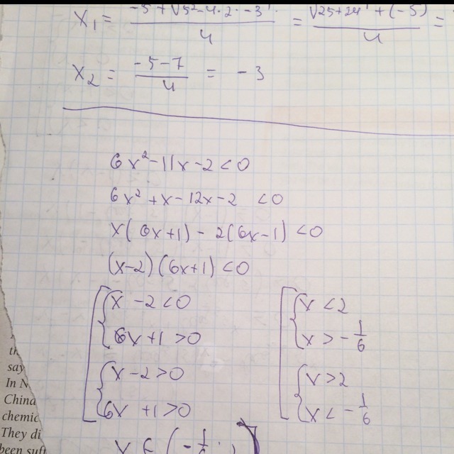Ответ: искомый интервал от -1/6 до 2, края интервала не включаются в ответ.