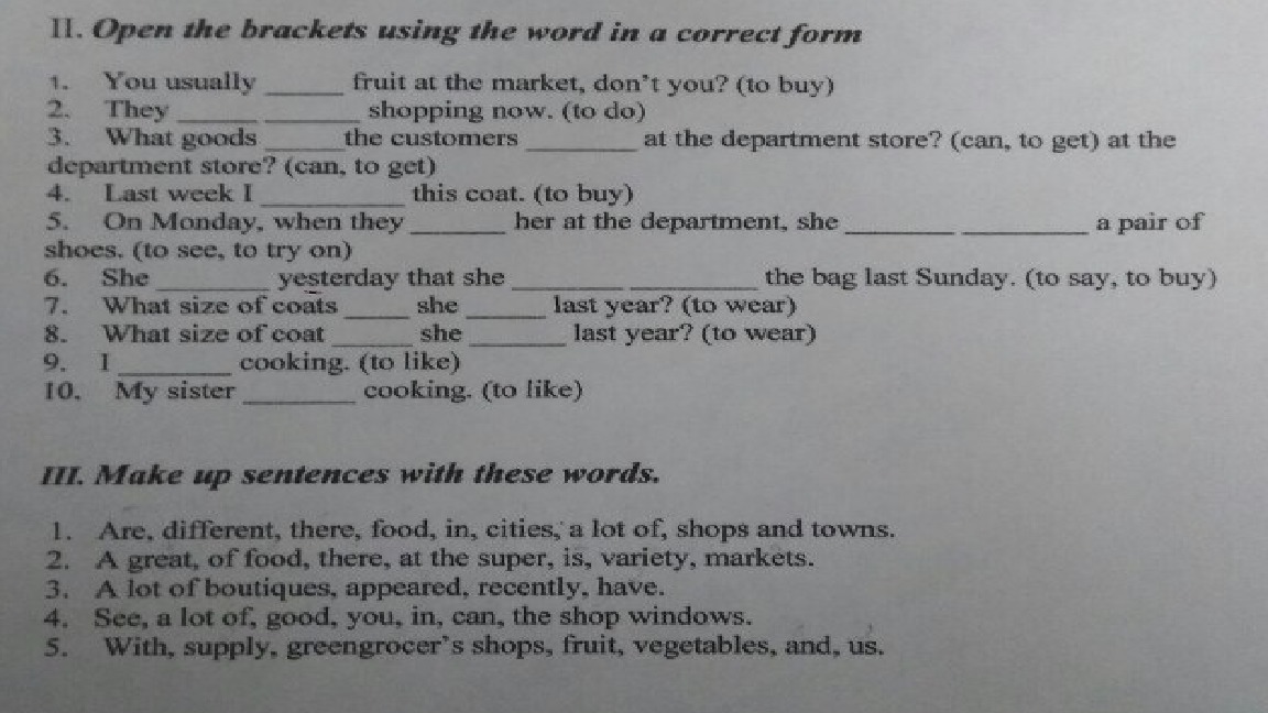 6. She said yesterday that she bought the bag last Sunday. (to say. to buy )