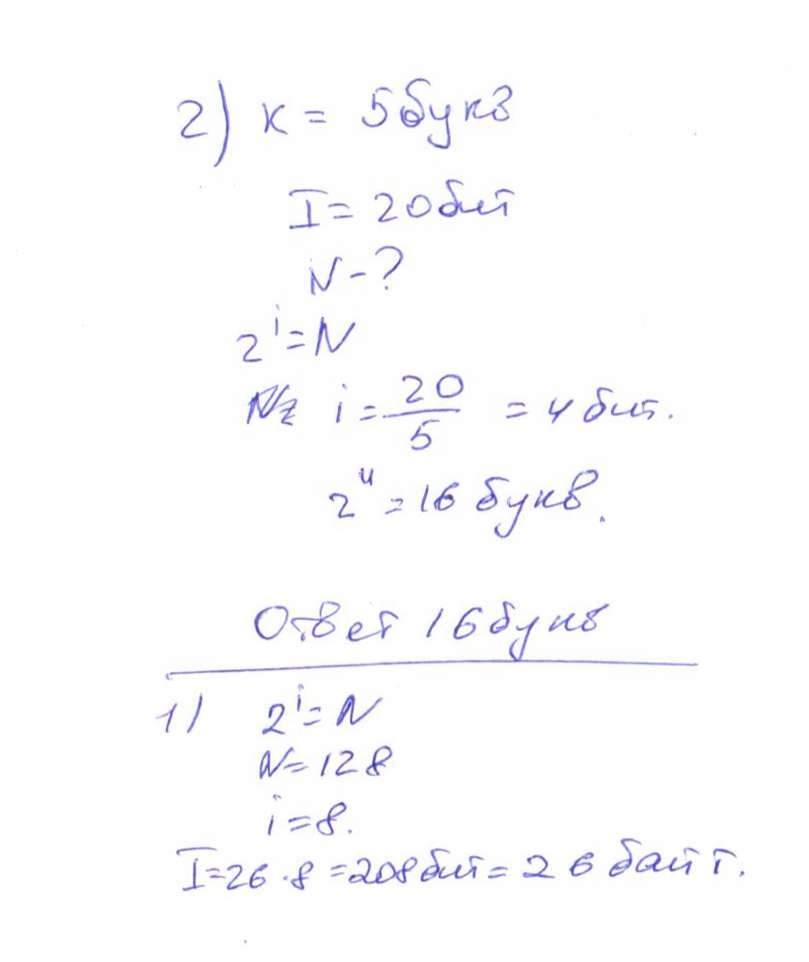 2. Слово из 5 букв несет 20 бит информации. Сколько букв в алфавите?