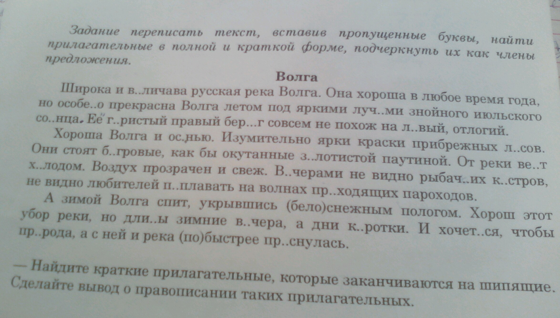 Краткие прилагательные: широка, величава, хороша, прекрасна, прозрачен, свеж, длины, коротки.