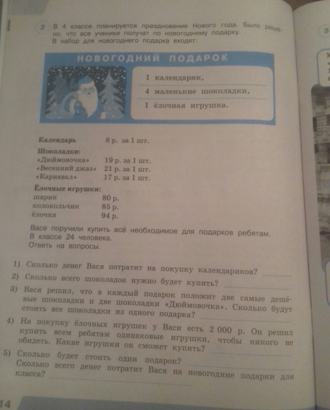5) 8+2х17+2х19+80=160р - стоит один подарок