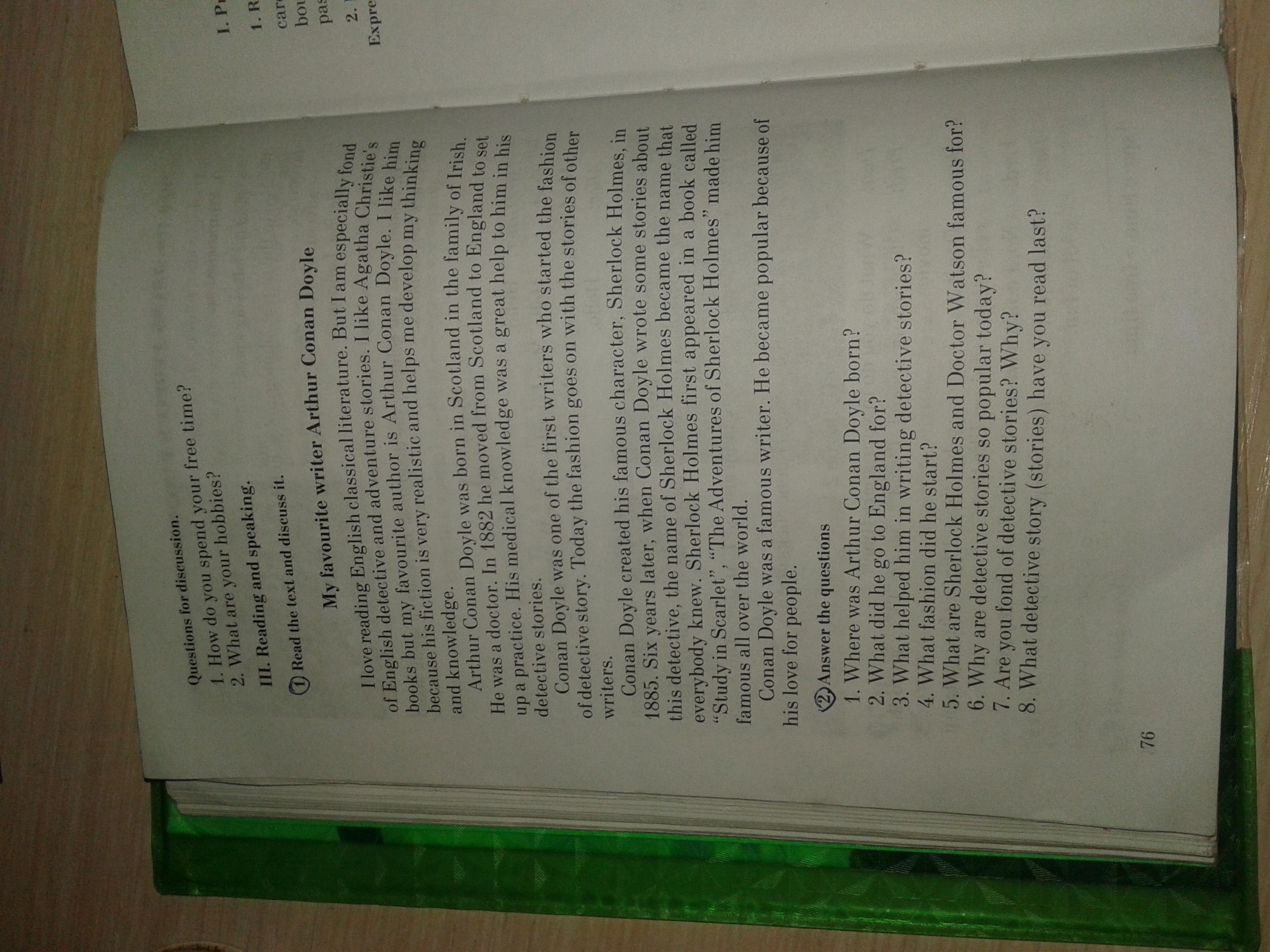 Я люблю читать английскую литературу. Но я особенно читаю рассказы о приключениях. Мне нравится английский детектив Агата Чен и Артур Конан,но любимый автор помогает мне развиваться , потому что его выдумка очень реалистична и родилась в Шотландии в семье Артура Конан Дойла, переехала из Шотландии в Англию , где он был врачом. Его медицинские знания были большой помощью детективных историй. сегодня мода продолжается с рассказами других писателей. Знаменитый персонаж, Шерлоке Холмс в Конане Дойле создал свой 1885 год. 6 лет спустя, когда Конан Дойл написал несколько рассказов об этом детективе имя Шерлоке холмса стало тем именем которое все знали. Шерлок Холмс впервые появился в книге под названием изучение в Скарлет. Приключения Шерлока холмса сделал его знаменитым во всем мире. Конан Дойл был известным писателем. Он стал популярным благодаря своей любви к людям