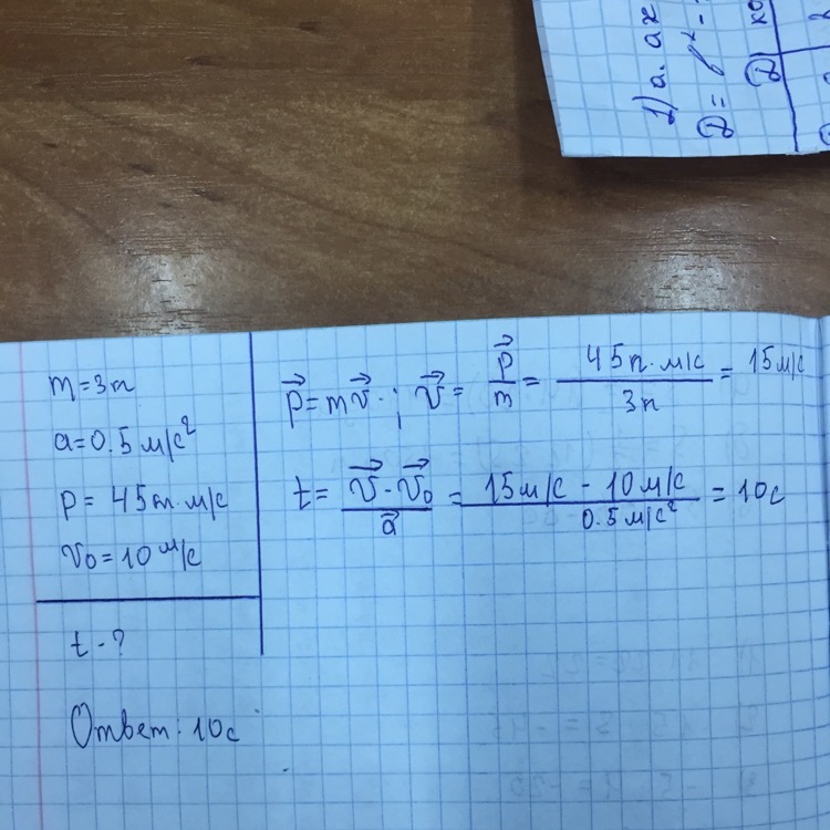 тело массой 3 кг движется равноускоренно с ускорением 0.5 м/с^2 ,в момент времени (время неизвестно) имеет импульс 45 (кг х м/с). Начальная скорость тела 10 м/с. Найдите t. Вектор начальной скорости тела и вектор