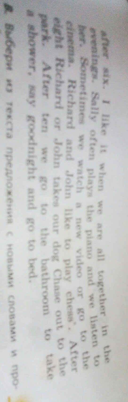 Прочитай текст и скажи что из членов семьи баркер выходит собаку гулять по вечерам перевод пожалуйста