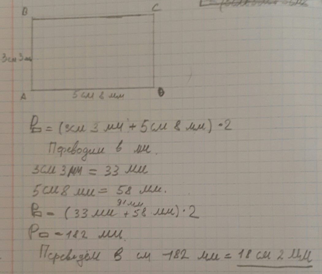 начертить прямойгольник со сторонами5см 8мм и 3см 3мм. вычеслить периметр. задание для 3 класса. помогите решит пж