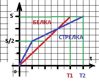 Обака Белка и Стрелка и бежали наперегонки белка весь путь бежал с одной и той же скоростью а стрелка превую половину пути бежала вдвое быстрее , чем белка , а вторую половину вдвое медленней, Белка. кто победил