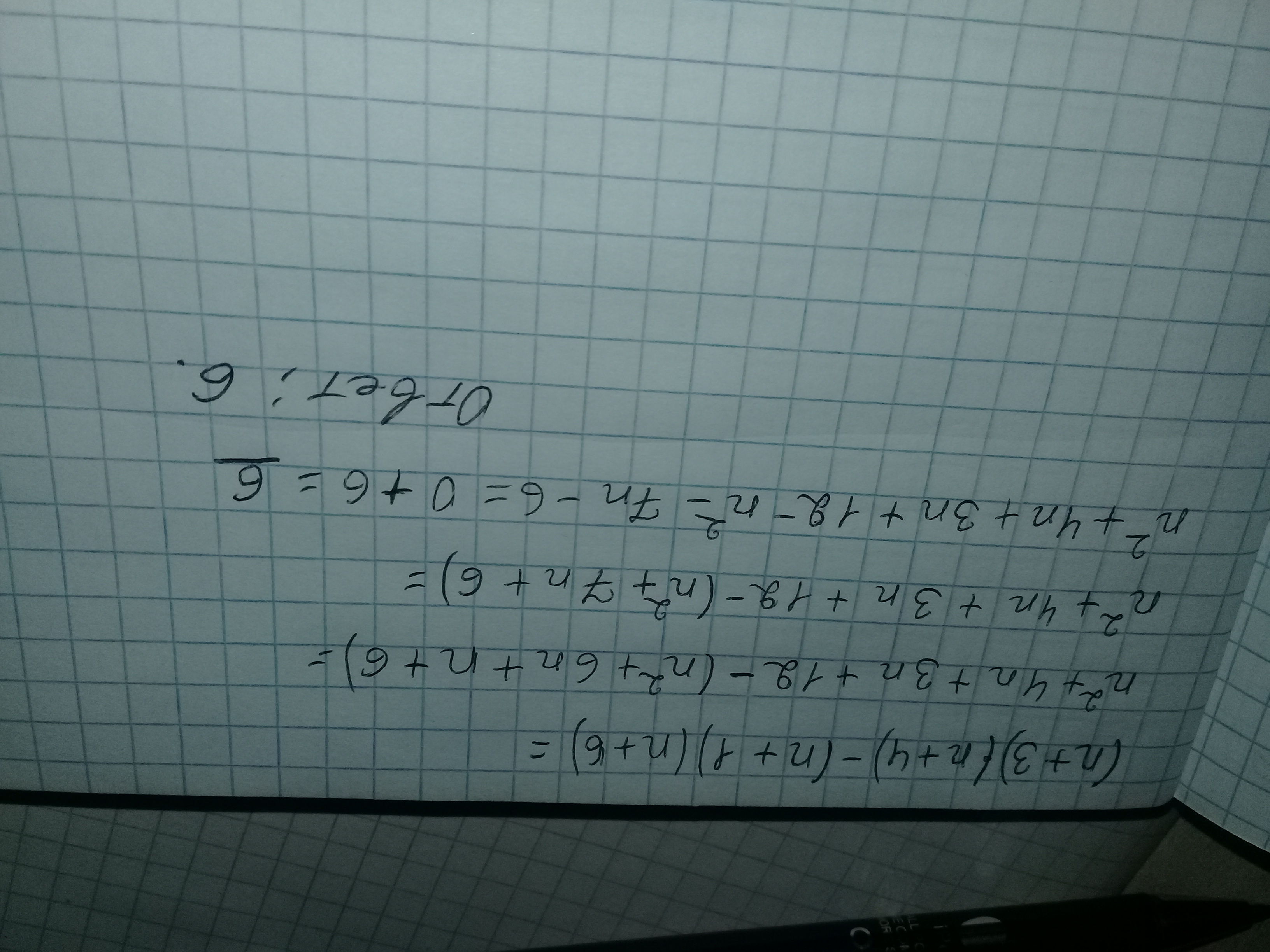 доказать что для любого натурального числа n значение выражения (n+3)(n+4)-(n+1)(n+6) делится на 6