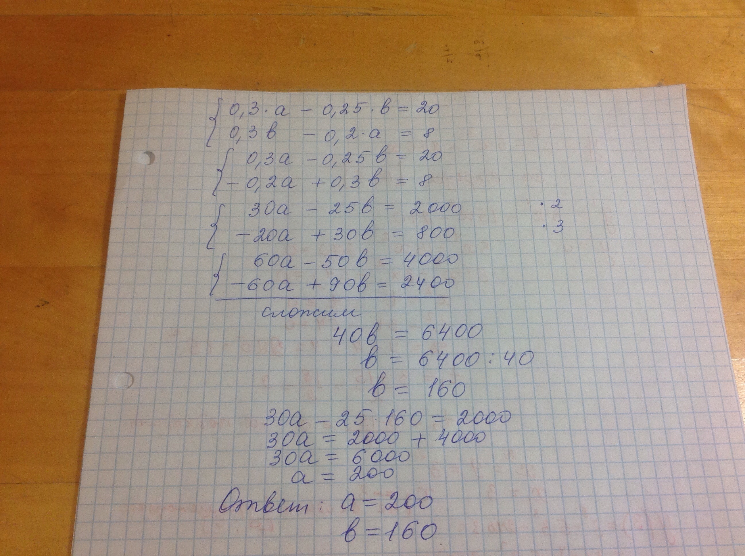 Известно, что 30% числа a на 20 больше, чем 25% числа b,