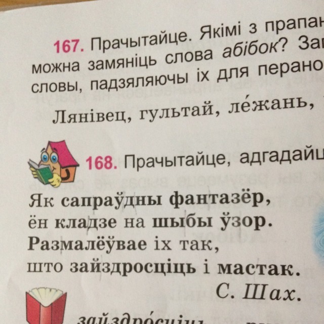 сап-рау-дны, фан-та-зёр, клад-зе,шы-бы,уз-ор,раз-ма-лё-у-ва-е,зай-здрос-цi-ць, мас-так