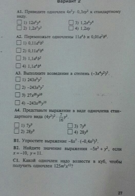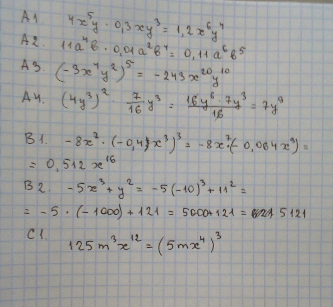 A1. 4x⁵y*0,3xy³= 1,2x⁶y⁴ (3)