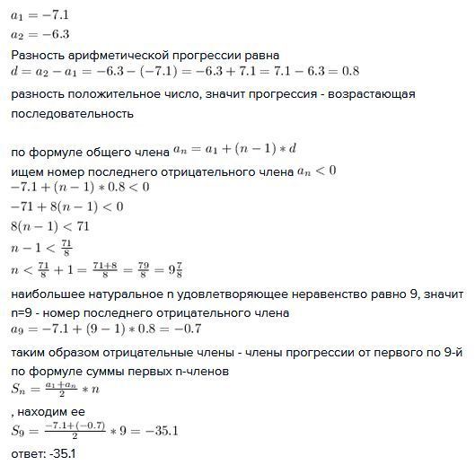Найдите сумму всех отрицательных членов арифметическое прогрессии -7,1; -6,3; ....... Пожалуйста.