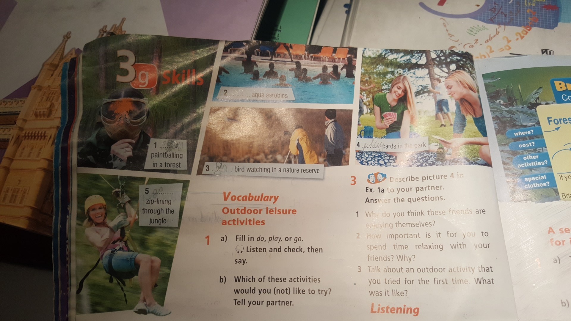 In this pool are engaged in water aerobics. There are boys and girls. There is a coach on the platform. They have dumbbells. I like to do it!