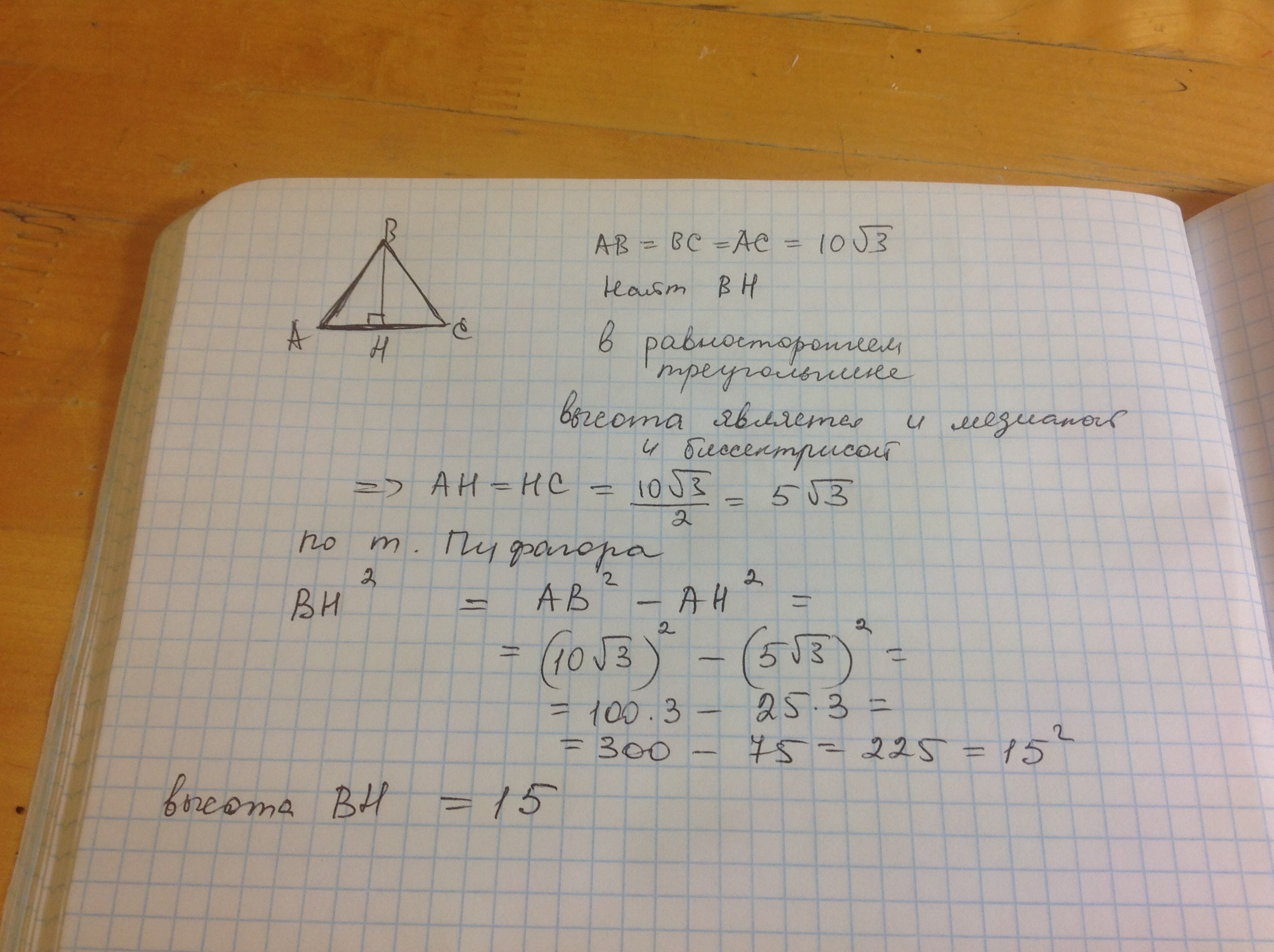 h = a*√3/2 = 10√3*√3/2 = 30/2 = 15
