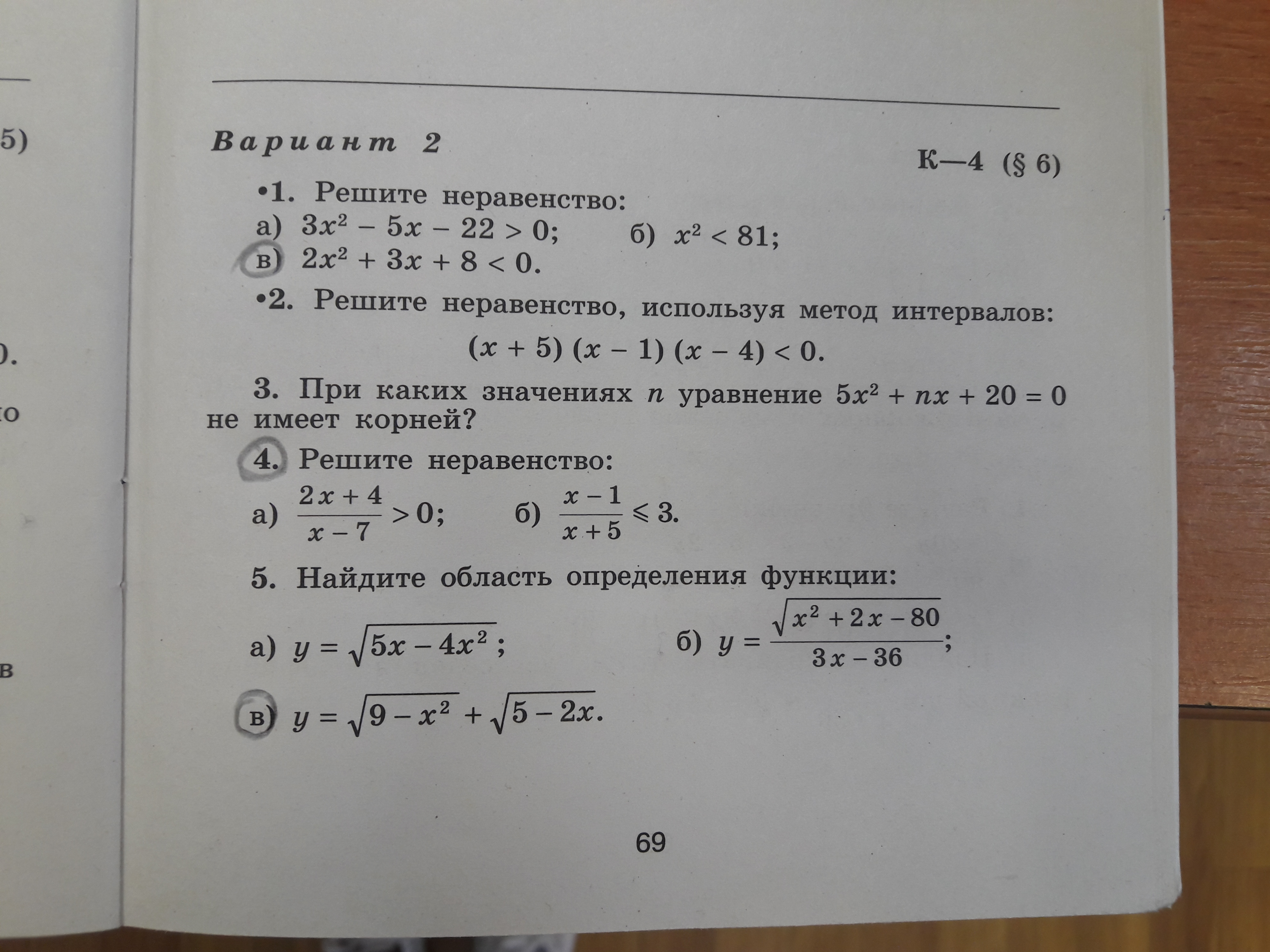 2x2+3x+8<0⇒Решим квадратное уравнение 2x2+3x+8=0Вычислим дискриминант.