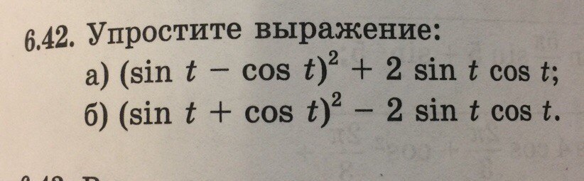 б) ( sin t + cos t)^2 -2 sin t cos t