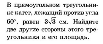 ответ:катет=3,гипотенуза=6, площадь=(9√3)/2