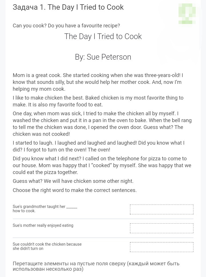3. Девочка не могла готовить, потому что не включила ПЕЧКУ (the Cooke)