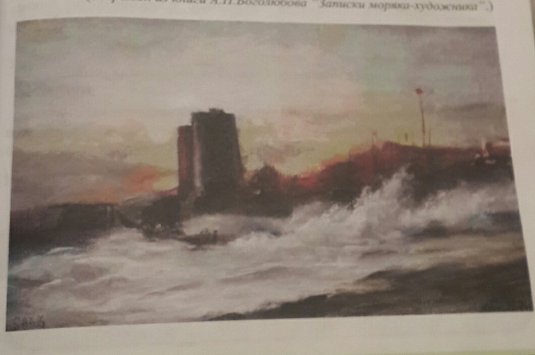 Гыз Галасы повернута на 360* вокруг своей оси, а вся остальная обстановка соответствует действительности. Контрофорс башни входит по касательной в окружность башни с правой стороны, если смотреть с моря, а на картине наоборот. Интересно почему это произошло? 1861 год: На Каспии:…По пути к Баку чертил разные берега… Наконец, мы пристали к бакинской пристани.